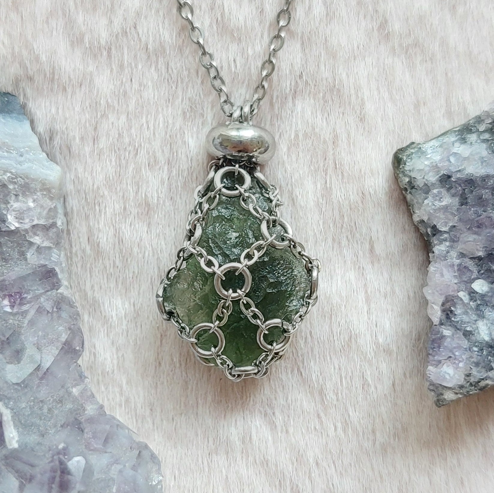 Moldavit Nemesacél Ásvány Szütyő nyakláncban